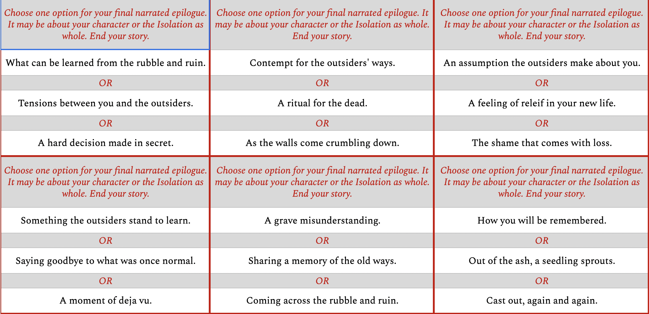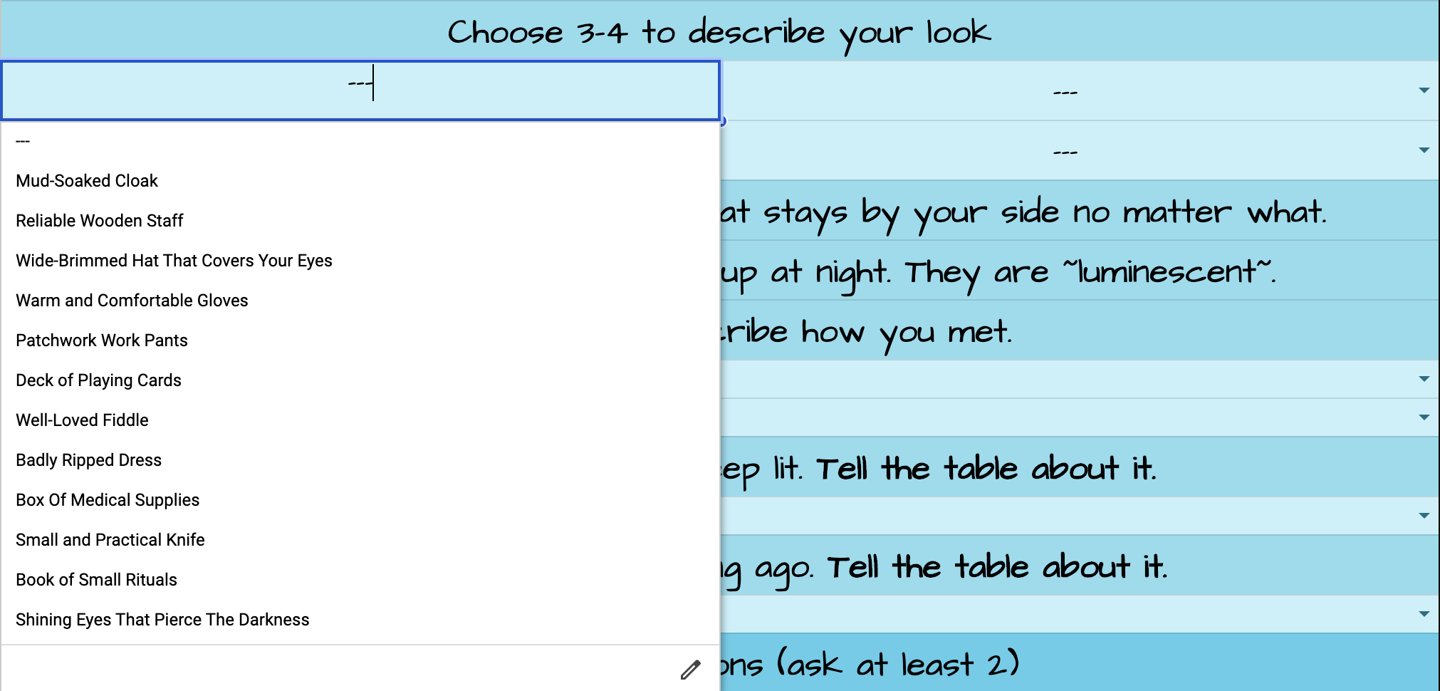 Detailed Character Options